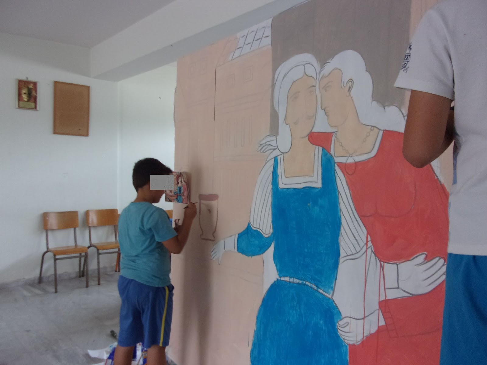 Μάλιστα ζωγράφισαν το σκηνικό της θεατρικής παράστασης